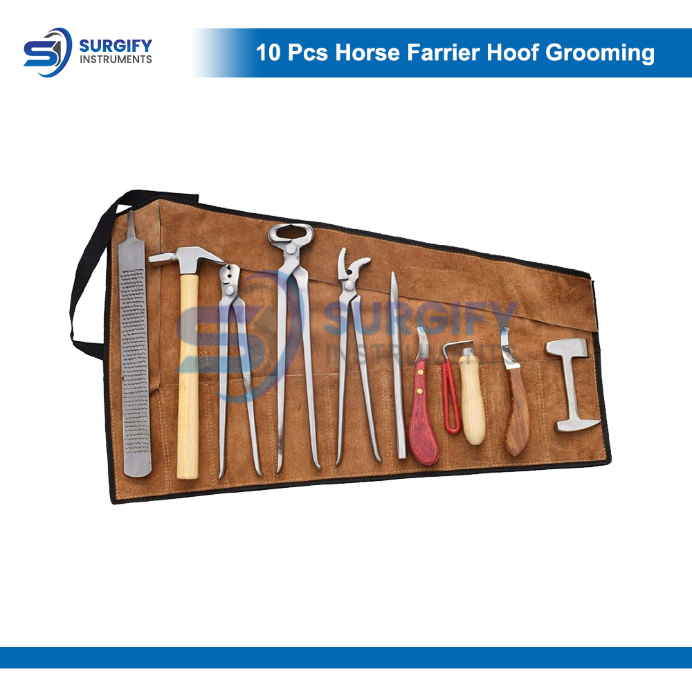 10 Pcs Horse Farrier Hoof Grooming Shoe Care Tools Kit with Carry Bag